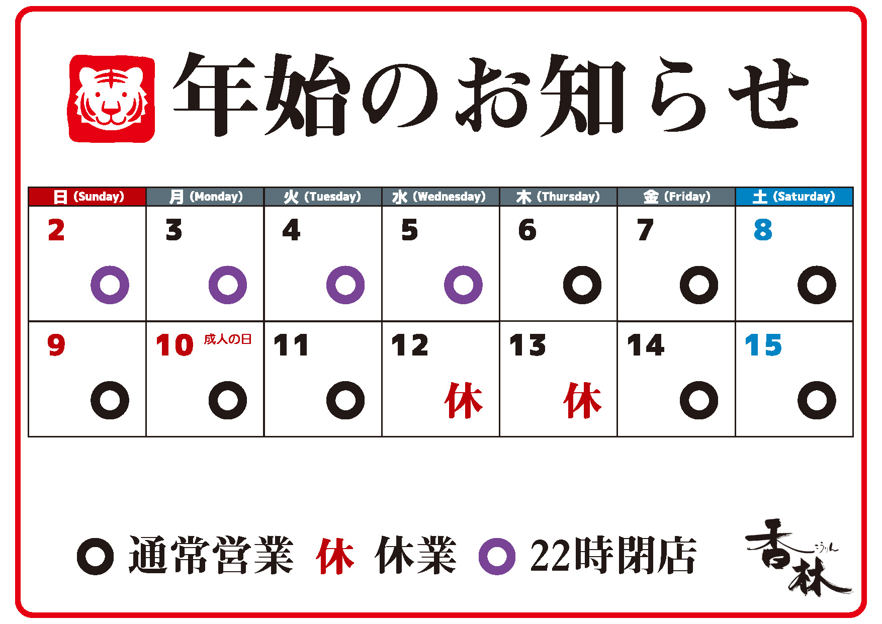 年始の営業時間のご案内A4-2022
