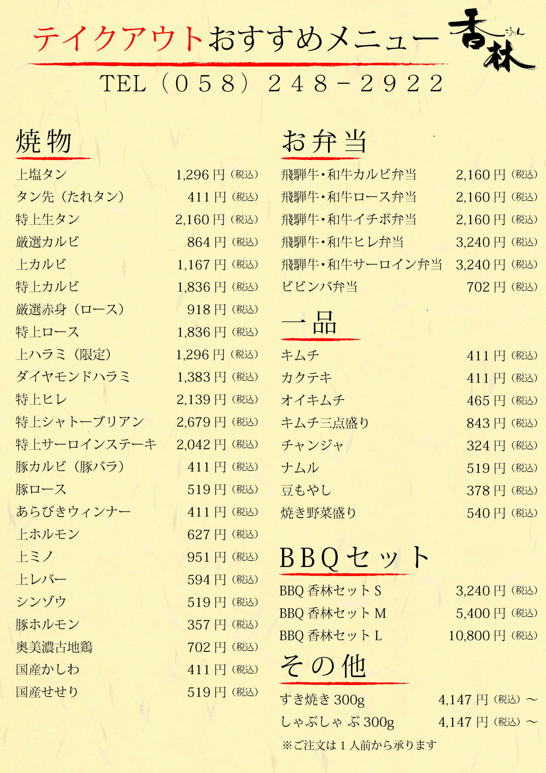 岐阜の焼肉といったら飛騨牛の焼肉!創業以来常連の方に愛される岐阜市北一色にある焼肉店です。テイクアウトも承ります。